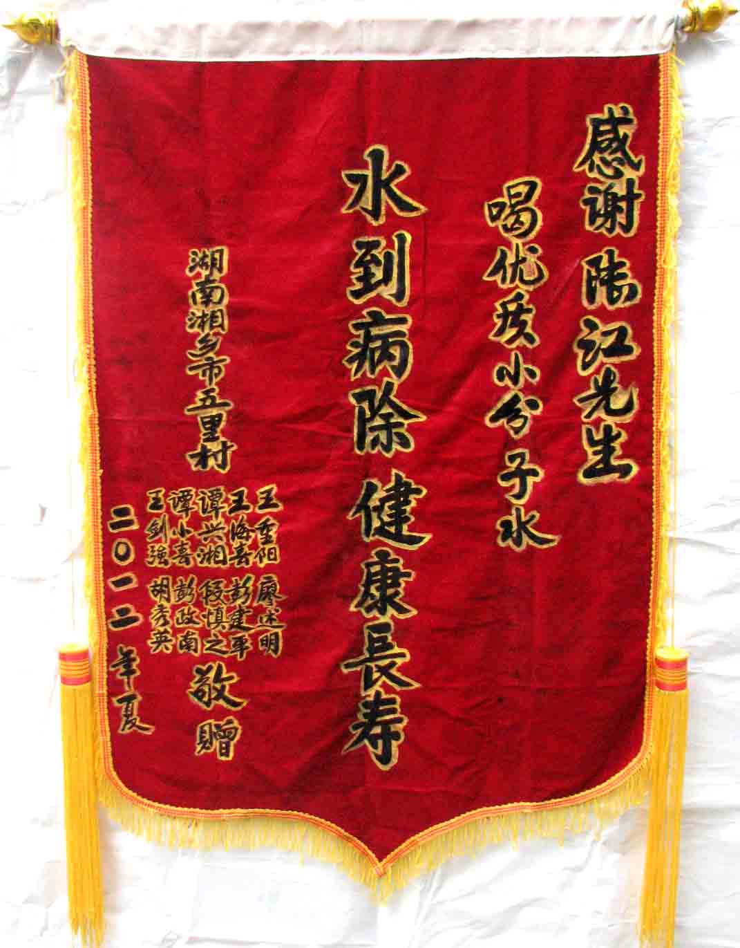 2015年潘志山主動寫一篇感想《我以親身實踐打破了冠心病、高血壓、糖尿病需終生服藥的神話》說:“堅持按發明人陸?江先生倡導的用‘已饑方食’的方法合理膳食,我的健康狀況越來越好:糖尿病造成的視力下降有了明顯的恢復,末梢神經炎導致的指端潰爛現在完全痊愈,痔瘡自從飲用微小分子團水半年后就再也沒有復發過,氣滯血瘀造成的嘴唇暗紫也漸漸變得紅潤,舌下靜脈黑紫消失,足背的動脈由以前的隱約感到跳動現在變得清晰有力。”[13]潘先生披露的訣竅,一是飲用微小分子團水給脫水細胞補水,二是“已饑方食”養生智慧,患者都能做到。